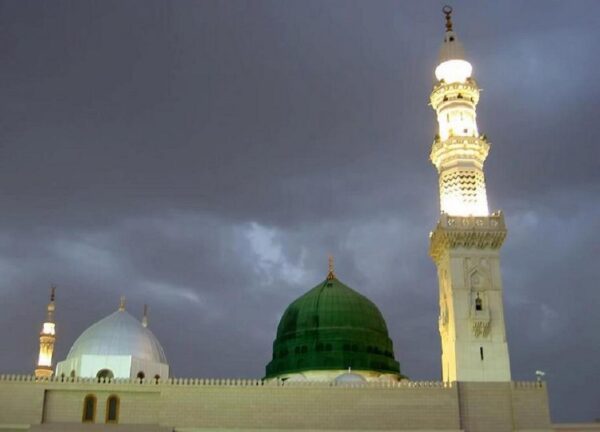 Anas bin Malik said, "A person entered the Mosque on a Friday through the gate facing the Daril-Qada' and the Messenger of Allah was standing delivering the khutba (sermon). The man stood in front of the Messenger of Allah and said, 'O Messenger of Allah, livestock are dying and the roads are cut off; please pray to Allah for rain.' So the Messenger of Allah ﷺ raised both his hands and said, 'O Allah! Bless us with rain. O Allah! Bless us with rain. O Allah! Bless us with rain!" Anas added, "By Allah, there were no clouds in the sky and there was no house or building between us and the mountain of Silas'. Then a big cloud like a shield appeared from behind it and when it came in the middle of the sky, it spread and then rained. By Allah! We could not see the sun for a week. The next Friday, a person entered through the same gate and Allah's Apostle was delivering the Friday khutba and the man stood in front of him and said, 'O Messenger of Allah! The livestock are dying and the roads are cut off; Please pray to Allah to withhold rain.' " Anas added, "The Messenger of Allah raised both his hands and said, 'O Allah! Round about us and not on us. O Allah!' On the plateaus, on the mountains, on the hills, in the valleys and on the places where trees grow.' " Anas added, "The rain stopped and we came out, walking in the sun." (Sahih Bukhari 2: 17: 127)