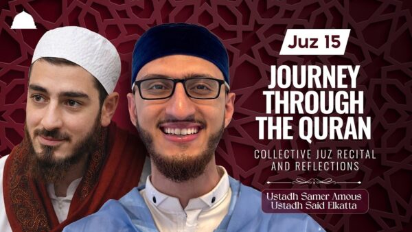 Journey through the Quran - reflections and recitation from Juz 15. Join us daily at 5pm EST for a short khatira led by Ustadh Samer Amous followed by a daily juz recital by Ustadh Said Elkatta.