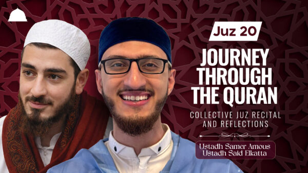 Journey through the Quran - reflections and recitation from Juz 20. Join us daily at 5pm EST for a short khatira led by Ustadh Samer Amous followed by a daily juz recital by Ustadh Said Elkatta.